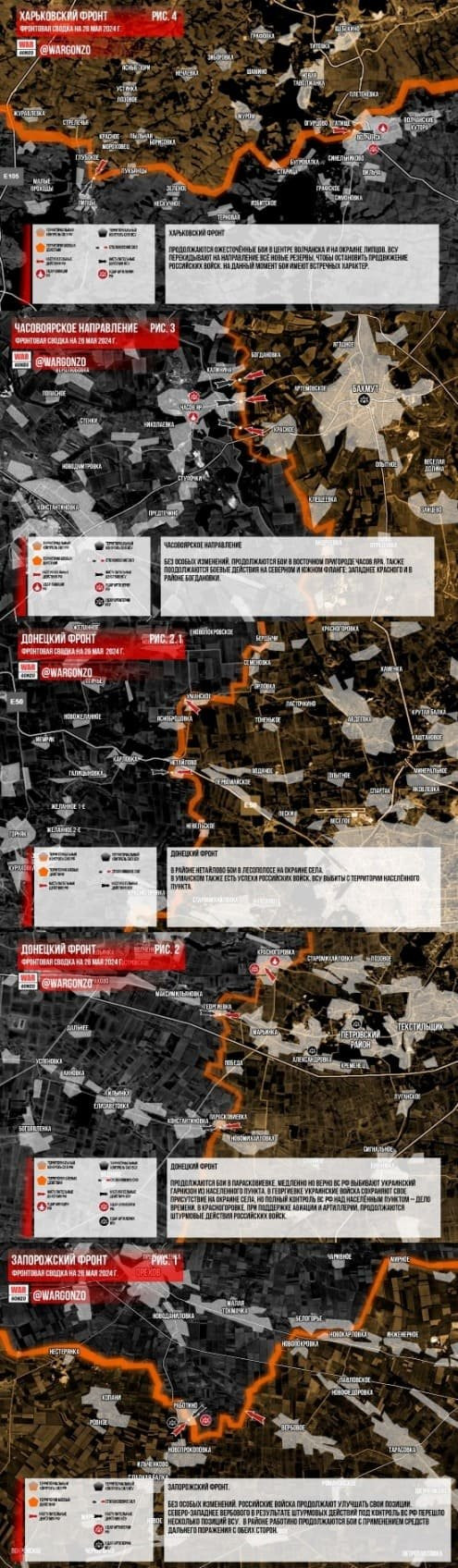 Ситуация в зоне СВО на сегодня. Карта боевых действий на Украине от 26.05.2024, ВС РФ идут вперёд, военная сводка