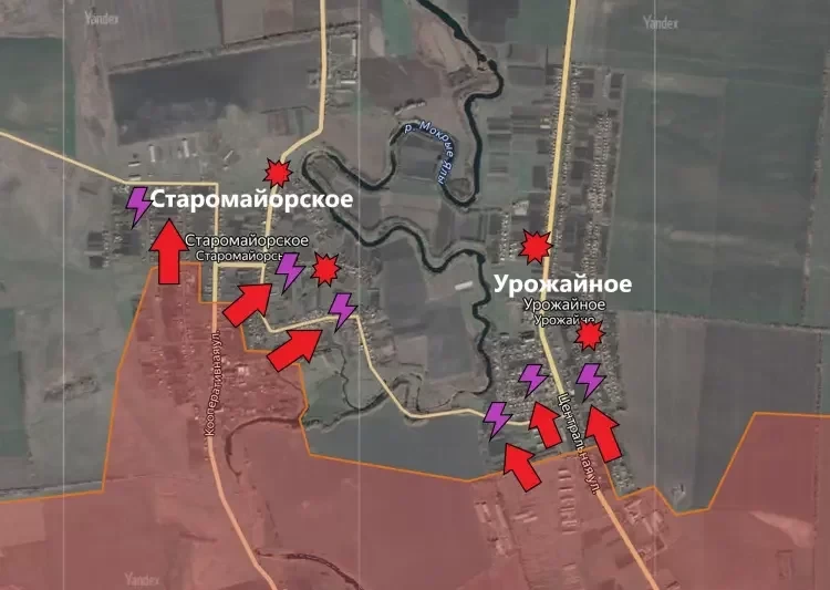 В Старомайорском ВС РФ заняли позиции на западе и северо-западе, в центре и на юго-востоке населённого пункта. Врагу остаётся всё меньше территории. Улица, по которой ведётся снабжение группировки ВСУ из Макаровки, находится под огневым контролем Армии России. И это уже создаёт дополнительные трудности врагу. Помимо этого, сообщается, что во время штурма позиций наши бойцы используют танки, что позволяет выбивать противника с его позиций довольно оперативно.