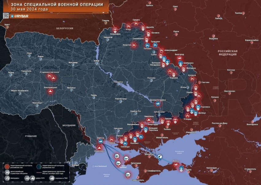 Сводка от 31 мая 2024 года - карта боевых действий, ситуация на фронтах Украине, ход специальной военной операции (СВО). Российские Вооружённые силы продолжают активную наступательную операцию сразу на нескольких участках. При этом они не позволяют противнику осуществлять контрнаступательные меры.