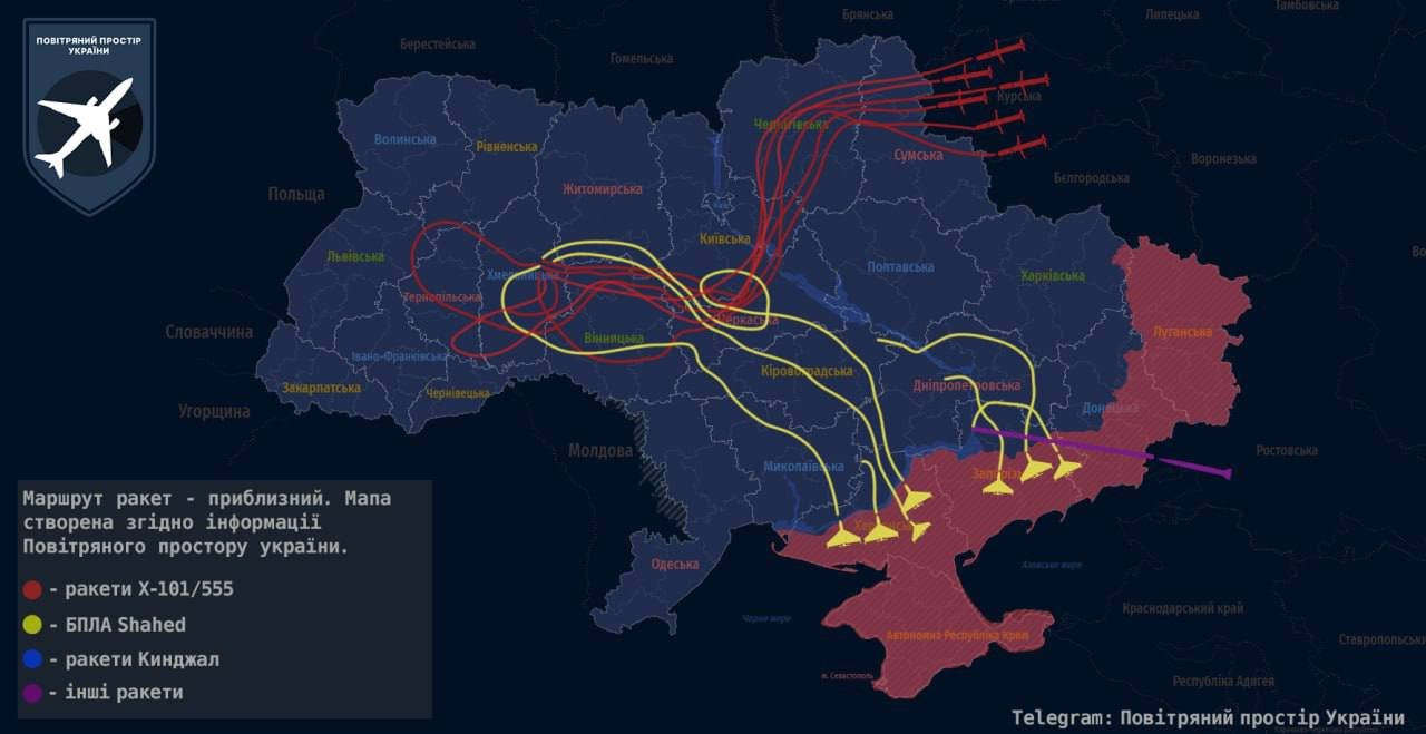 Атака ракет длилась 1,5 часа, «гераней/шахедов» - более 5.
