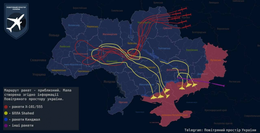 Российские стратегические ракетоносцы Ту-95мс и ударные дроны атаковали ряд объектов на территории Украины.