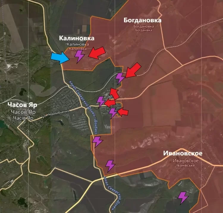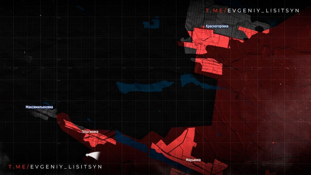 Западнее Георгиевки идут бои на подступах к Максимильяновке. Также зафиксировано продвижение ВС РФ южнее Георгиевки.