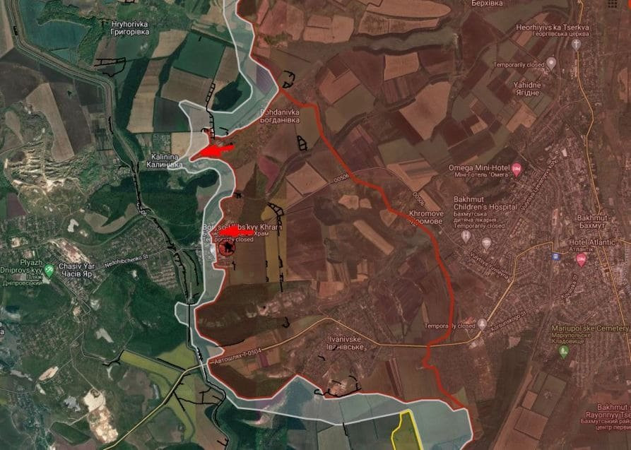 На ЧасовЯрском направлении в Калиновке позиционные бои, российские войска имеют незначительные тактические успехи. ВС РФ давят в западной части мкр. «Канал», ВСУ перебрасывают резервы через переправу в западной части урочища Орлова.
