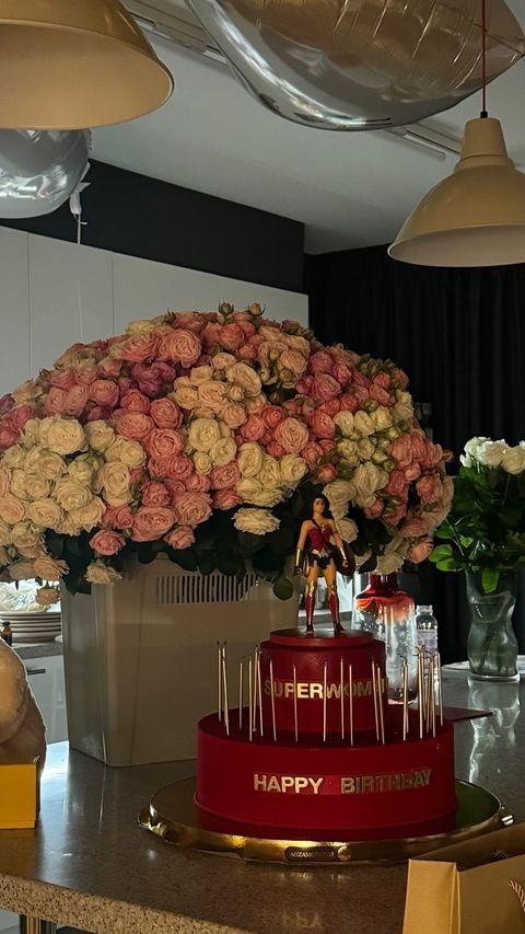 На кадрах запечатлен момент поздравления, включая впечатляющий торт с символичной надписью «Super Woman», что подчеркивает восхищение Александра своей супругой.