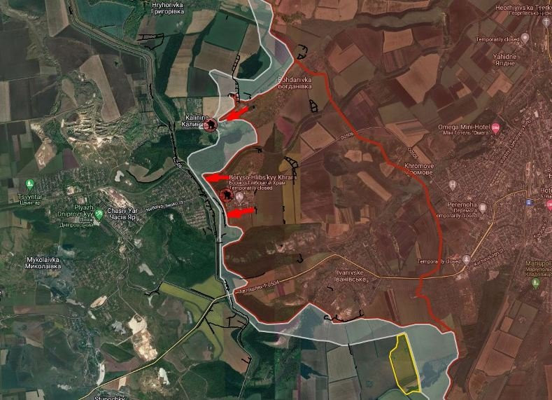 Помимо этого, наступление ВС РФ идёт в Дружбе, Пивничном (Кирово) и Зализном (Артёмово). Продолжаются бои и за Пивденное (Ленинское), где по-прежнему располагаются украинские формирования, пишет PulsePen.