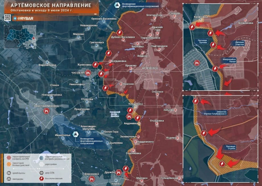 На Артёмовском направлении подразделения ВС РФ подтягивают фланги после взятия микрорайона «Канал» в Часовом Яре и наступают в границах Калинино (Калиновке).
