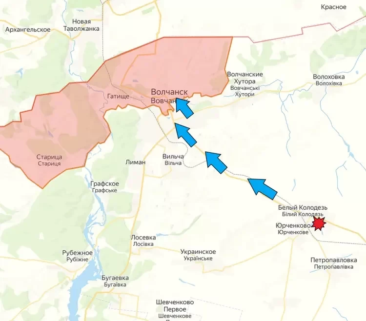 Утром 9 июля Telegram-канал «Северный ветер» сообщил, что на Волчанском направлении продолжаются ожесточенные бои в городе Волчанск. Общее продвижение российских войск на Волчанском направлении составило до 100 метров. Авторы канала подчеркнули, что в районе Волчанска ВСУ снизили интенсивность переброски подкрепления и сосредоточили усилия на попытках наведения насыпных переправ.