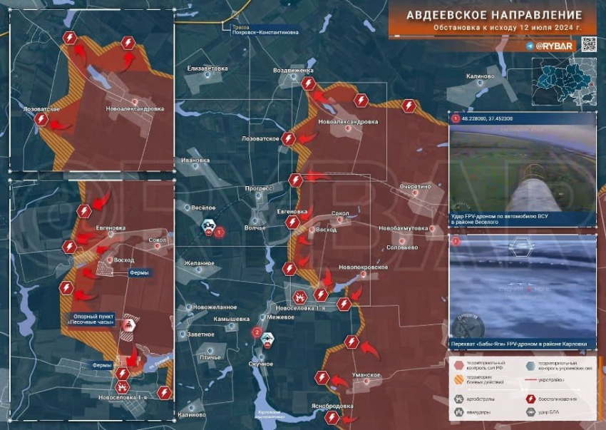 Карта боевых действий на Украине в зоне СВО по состоянию на 13.07.2024