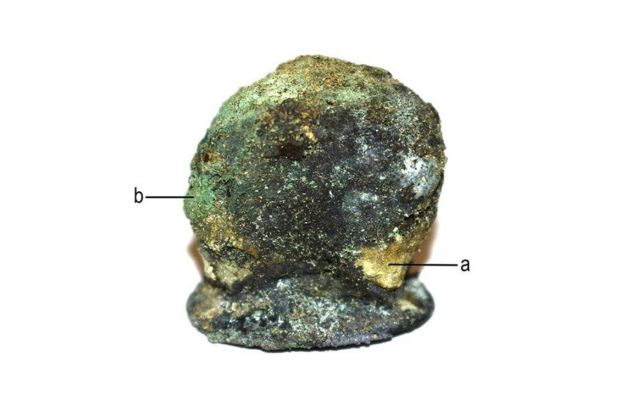 Чтобы лучше понять состав протеза, исследователи проанализировали его под сканирующим электронным микроскопом и с помощью рентгеновской спектроскопии, которая анализирует химический состав образца. Они обнаружили, что металлические детали действительно в основном были сделаны из меди со значительным количеством золота и серебра.