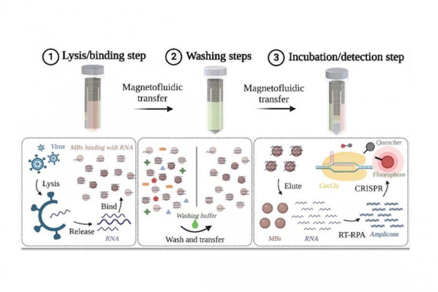 Обычно молекулярная диагностика требует сложной подготовки образцов и дорогостоящего оборудования. Однако LIAMT устраняет эти трудности, используя магнитно-жидкостный транспорт микро- и наномагнитных шариков. Эта технология позволяет объединить все этапы анализа: вирусный лизис, извлечение нуклеиновых кислот, изотермическую амплификацию и обнаружение с помощью CRISPR.