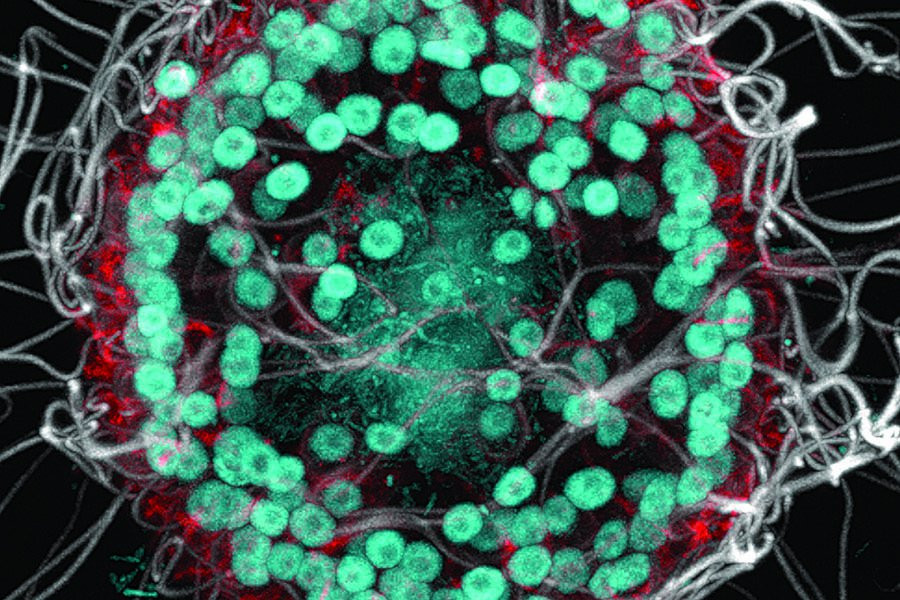 «Одной из интересных особенностей является то, что эти колонии имеют форму, похожую на бластулу — полый шар из клеток, который формируется на ранних стадиях развития животных», — сказала Кинг. «Мы хотели узнать об этом больше».
