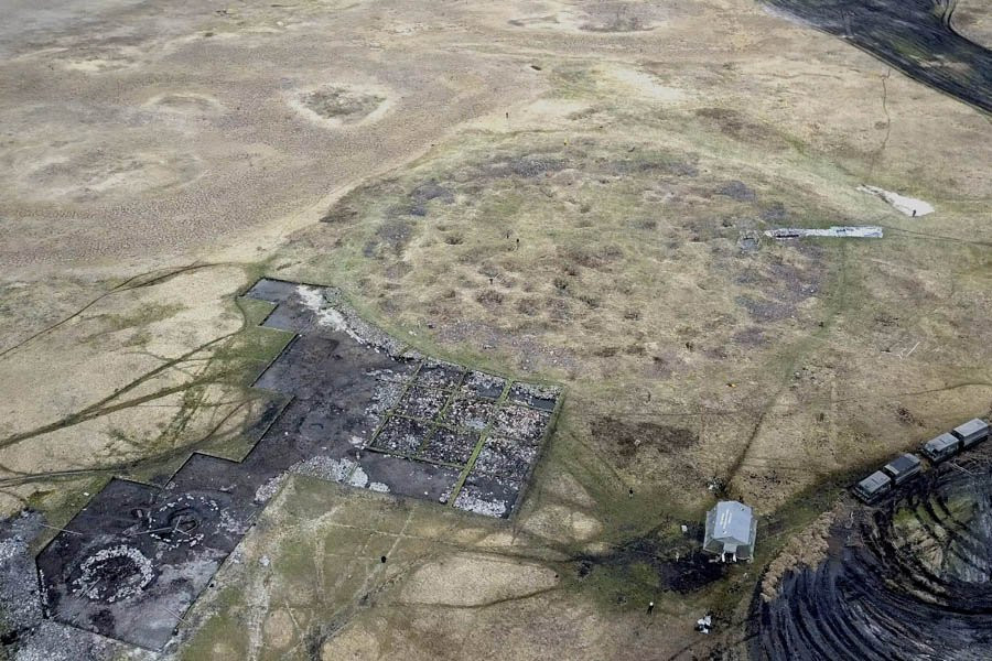 На кургане были обнаружены фрагментированные останки по меньшей мере одного человека и 18 лошадей, что позволяет предположить, что они были принесены в жертву в честь знатного человека, похороненного внутри.