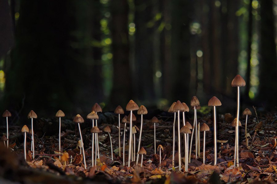 Грибы растут, выпуская споры, которые могут прорастать и образовывать длинные паутинные нити под землей (мицелий). Обычно мы видим только крошечные грибы на поверхности, не осознавая, что под нашими ногами находится обширная сеть взаимосвязанного мицелия. Именно через эту сеть может передаваться информация, что-то вроде нейронных связей в мозге.