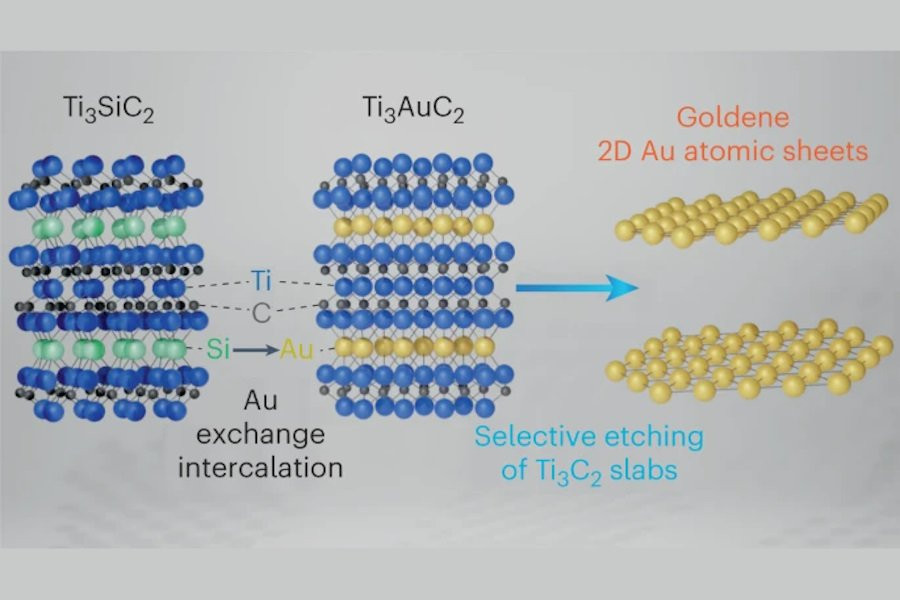 Исследователи из Linköping University (Швеция) сумели создать голден — одиночные слои золота, толщиной всего в один атом. Этот научный прорыв достигнут благодаря использованию двумерного карбида титана и золота, которые были подвергнуты травлению специальным реагентом, известным как Мураками.