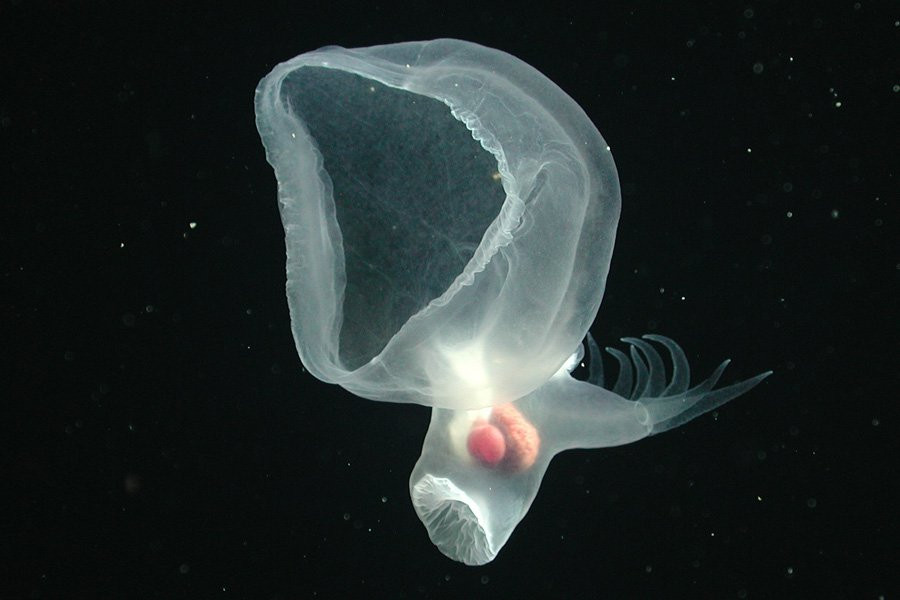 Прозрачное существо размером с бейсбольный мяч было замечено почти четверть века назад на глубине около 2,6 километра под поверхностью залива Монтерей в Калифорнии учеными, использовавшими дистанционно управляемый подводный аппарат из Научно-исследовательского института аквариума залива Монтерей. Существо плавало с помощью широкого хвоста и иногда светилось биолюминесценцией, но оно не было явно похоже ни на одного из известных обитателей этих глубин.