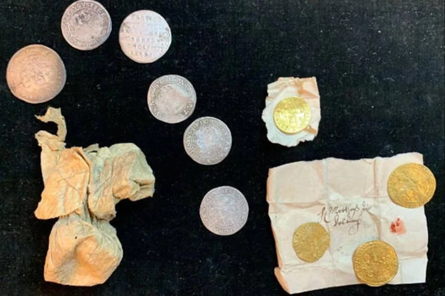 Золотые монеты были завернуты в бумагу и идентифицированы как принадлежащие церковной сокровищнице.