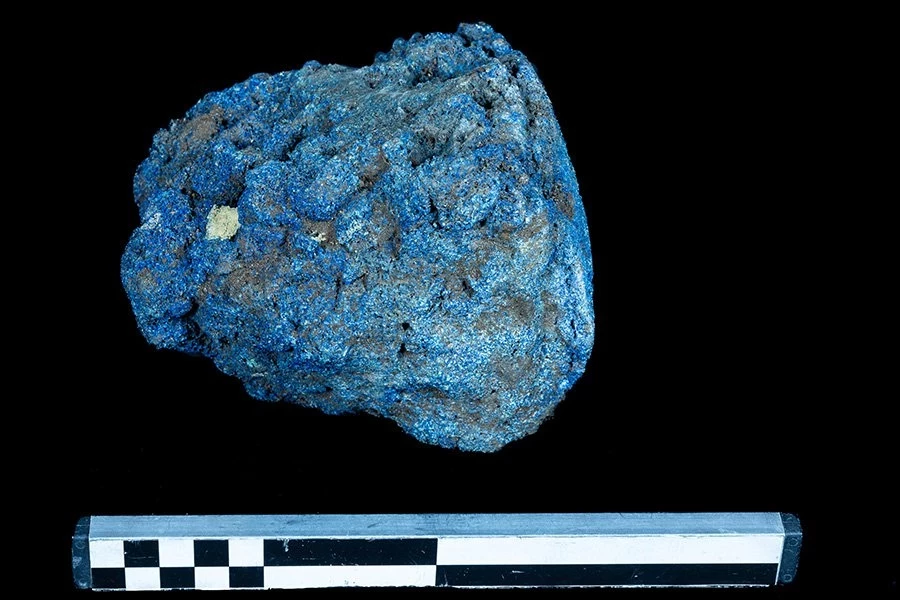 Египетский синий, иногда называемый «фриттой», — это синтетический пигмент, который не встречается в природе. Он был создан путем нагревания смеси кремнезема, известняка, медьсодержащих минералов и карбоната натрия до высоких температур.