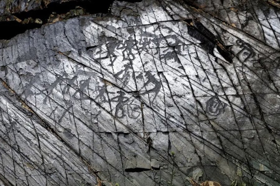 Высота этих древних рисунков достигает двух метров, а длина более 15-20 метров. Большинство петроглифов изображают повседневную жизнь и мировоззрение людей того времени.