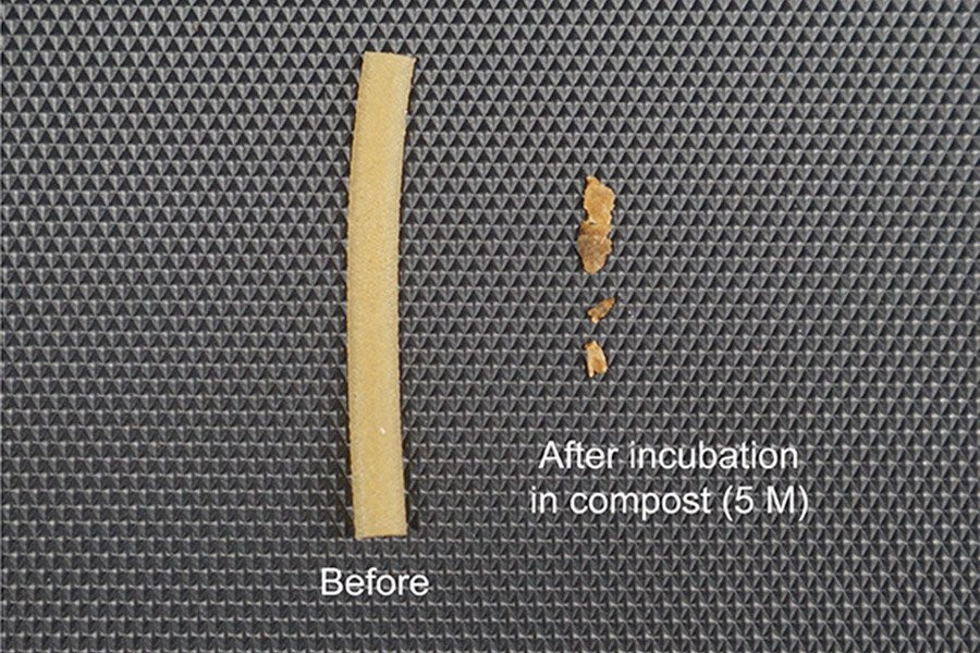 Это могло бы стать ключевым моментом в утилизации такого пластика, если бы он был коммерчески разработан. Исследования показывают, что не все «компостируемые» пластмассы разлагаются так, как рекламируется.