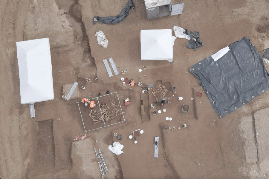 Остальные ямы сейчас раскапываются, и кости, которые к настоящему моменту обнаружены, доводят общее количество лошадей до 28. К моменту завершения раскопок к этому подсчету добавится еще много. Археологи надеются, что им удастся разгадать причину смерти. Мы знаем, что это не была эпидемия, иначе лошади не были бы взрослыми самцами одного возраста.