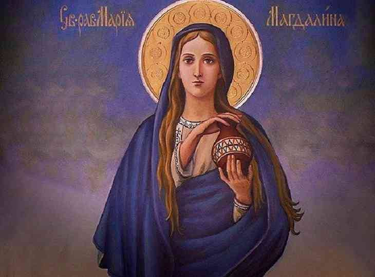 О, святая мироносице, равноапостольная Магдалино Марие! Ты теплою любовию своею ко Христу Богу попрала еси злыя козни вражия и обрела еси безценный бисер Христа и достигла еси Царства Небеснаго. Сего ради к тебе припадаю и умиленною душою и сокрушенным сердцем вопию ти аз недостойный: призри с высоты небесныя на мя боримаго греховными искушениями; виждь, коль многими грехи и беды на всяк день враг запинает мя, ищя моея погибели. Славная и всехвальная ученице Христова, Марие! Умоли возлюбленнаго тобою, и возлюбившаго тя, Христа Бога, да подаст ми оставление многих моих прегрешений, укрепит мя благодатию своею трезвенно и бодренно шествовати путем святых заповедей Его и да соделает мя благоуханным храмом Духа Святаго: да тако в мире непос-тыдно скончаю многотрудное житие мое на земли и вселюся во светлыя и блаженныя обители рая небеснаго, идеже ты со всеми святыми непрестанно радостно славословиши единосушную Троицу, Отца, Сына и Духа Всесвятаго. Аминь.
