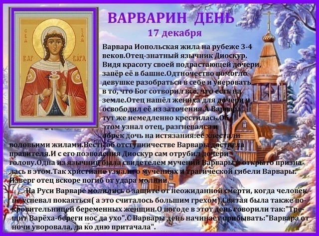 Запреты и что можно делать в день памяти святой великомученицы Варвары, 17 декабря