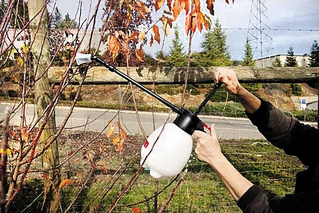 Для высоких деревьев в садовых магазинах доступны опрыскиватели с телескопическими штангами, которые позволяют добраться до высоких крон, достигая до трех метров.