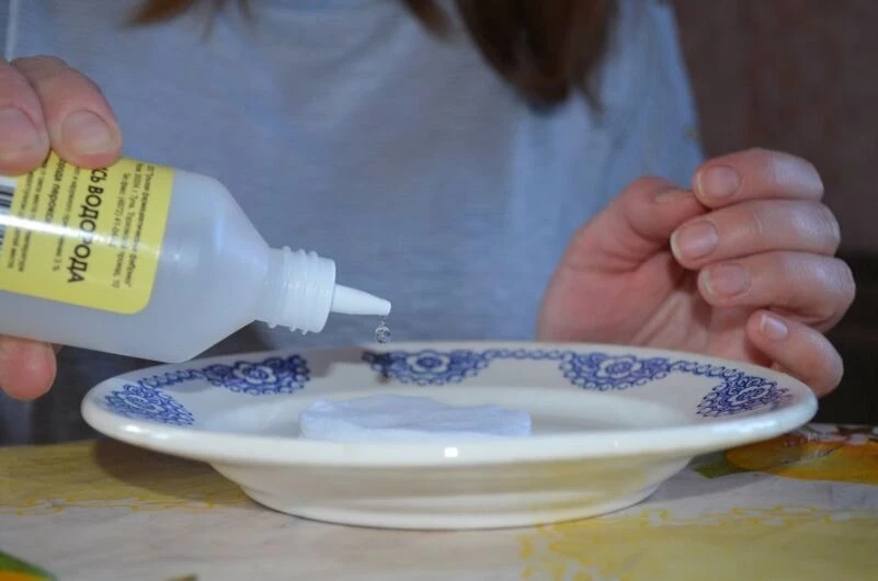 - Используйте такой же раствор (1 ст. л. перекиси на 0,5 л воды).