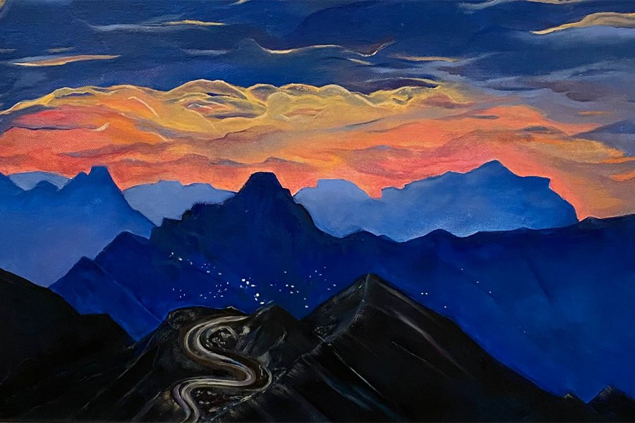 Шахри Тахнаева – художница из Дагестана, работающая в импрессионистической манере живописи, все ее работы пронизаны светом, легкостью и невесомостью. Художница использует множество оттенков синего для передачи неповторимого горного воздуха Дагестана.